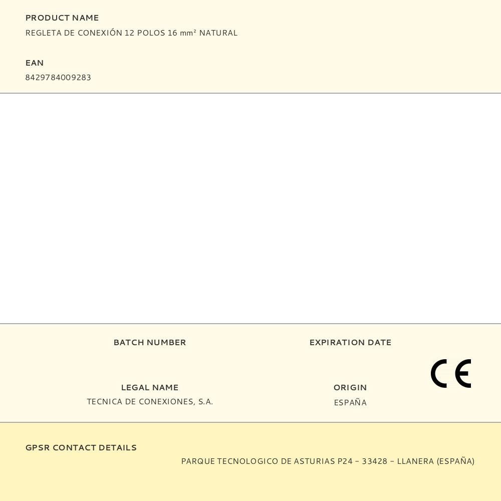 REGLETA DE CONEXIÓN 12 POLOS 16 mm² NATURAL
