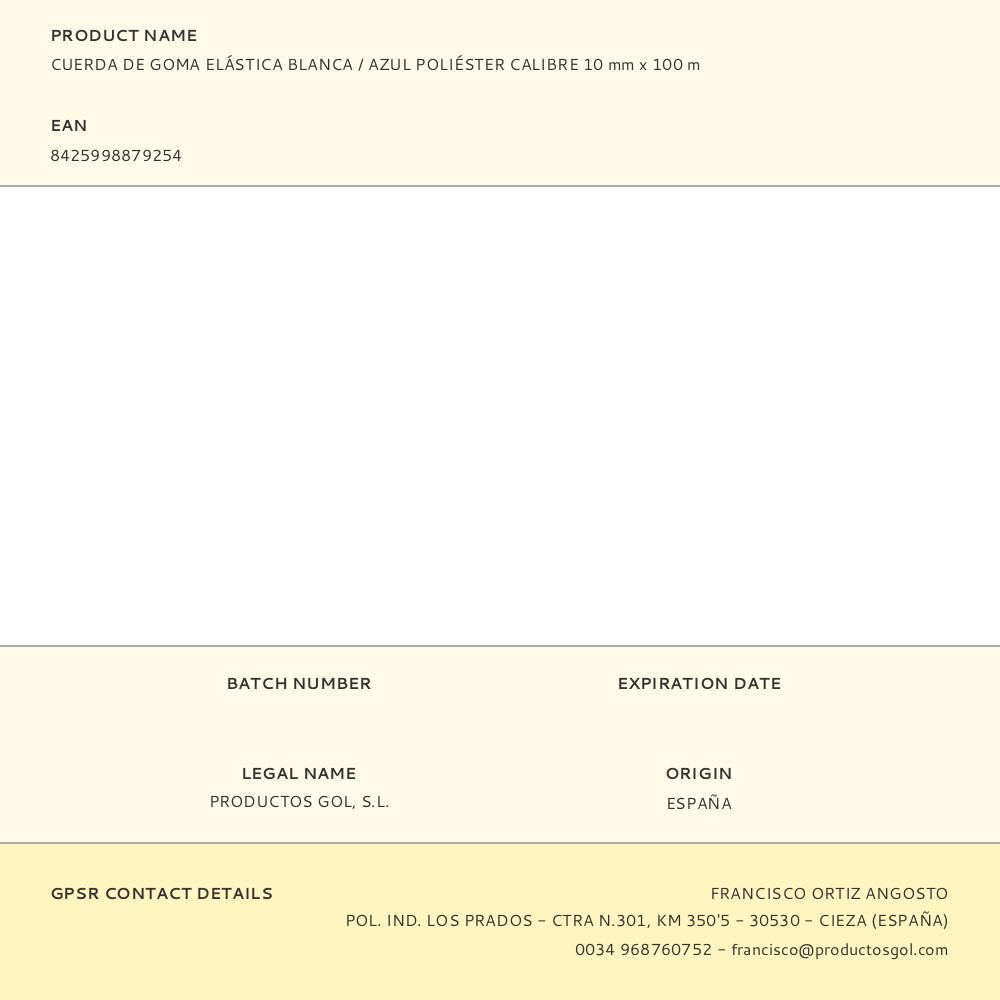 CUERDA DE GOMA ELÁSTICA BLANCA / AZUL POLIÉSTER CALIBRE 10 mm x 100 m
