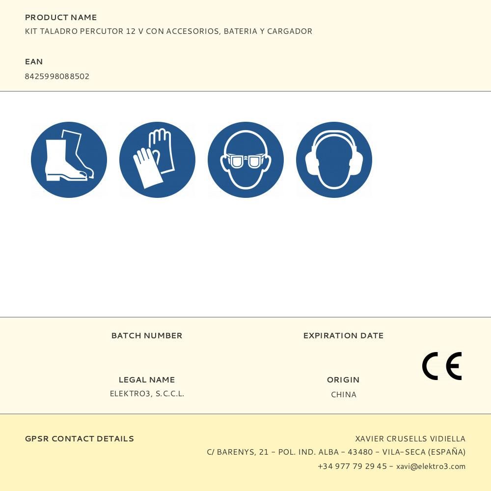 KIT TALADRO PERCUTOR 12 V CON ACCESORIOS, BATERÍA 2.0Ah Y CARGADOR