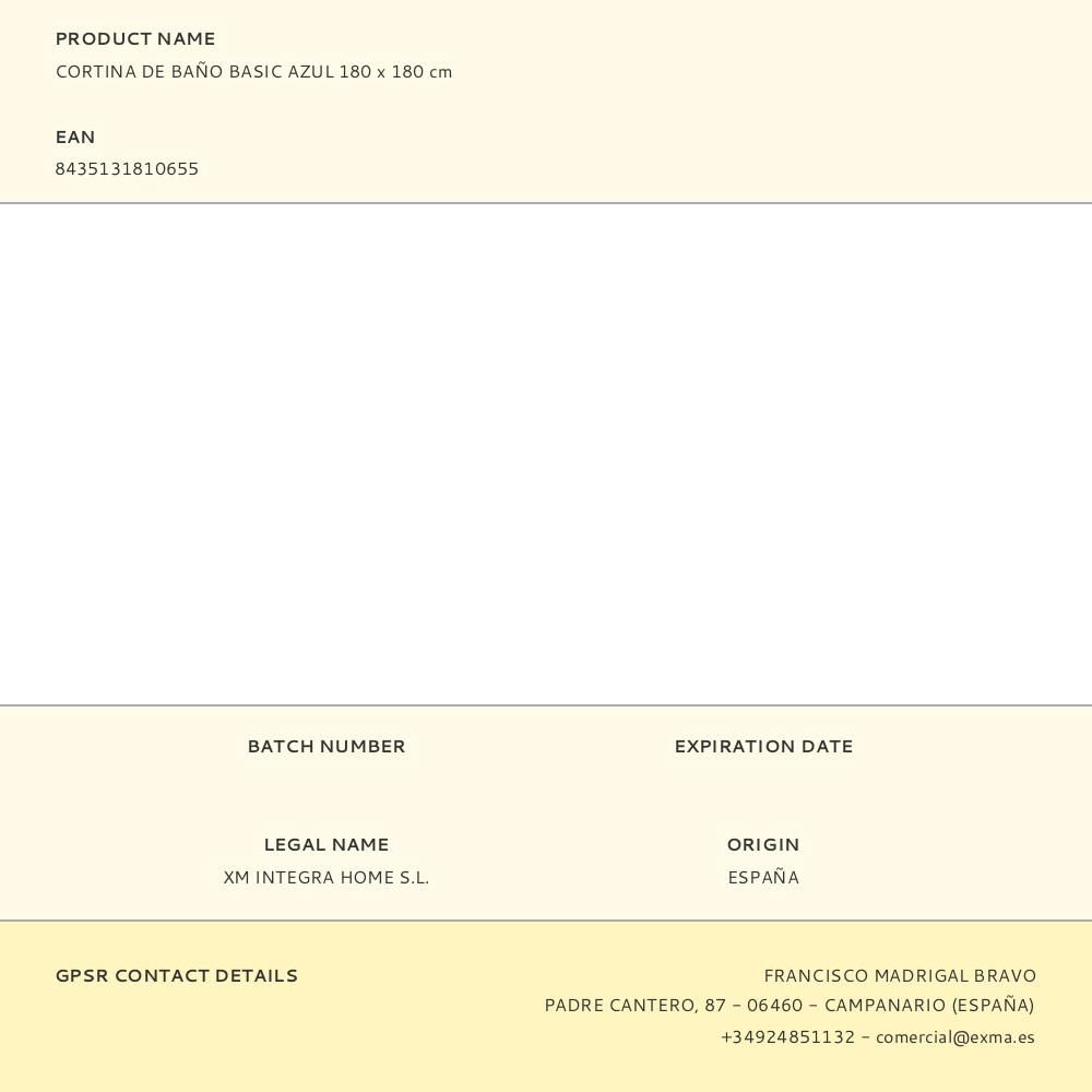 CORTINA DE BAÑO BASIC AZUL 180 x 180 cm