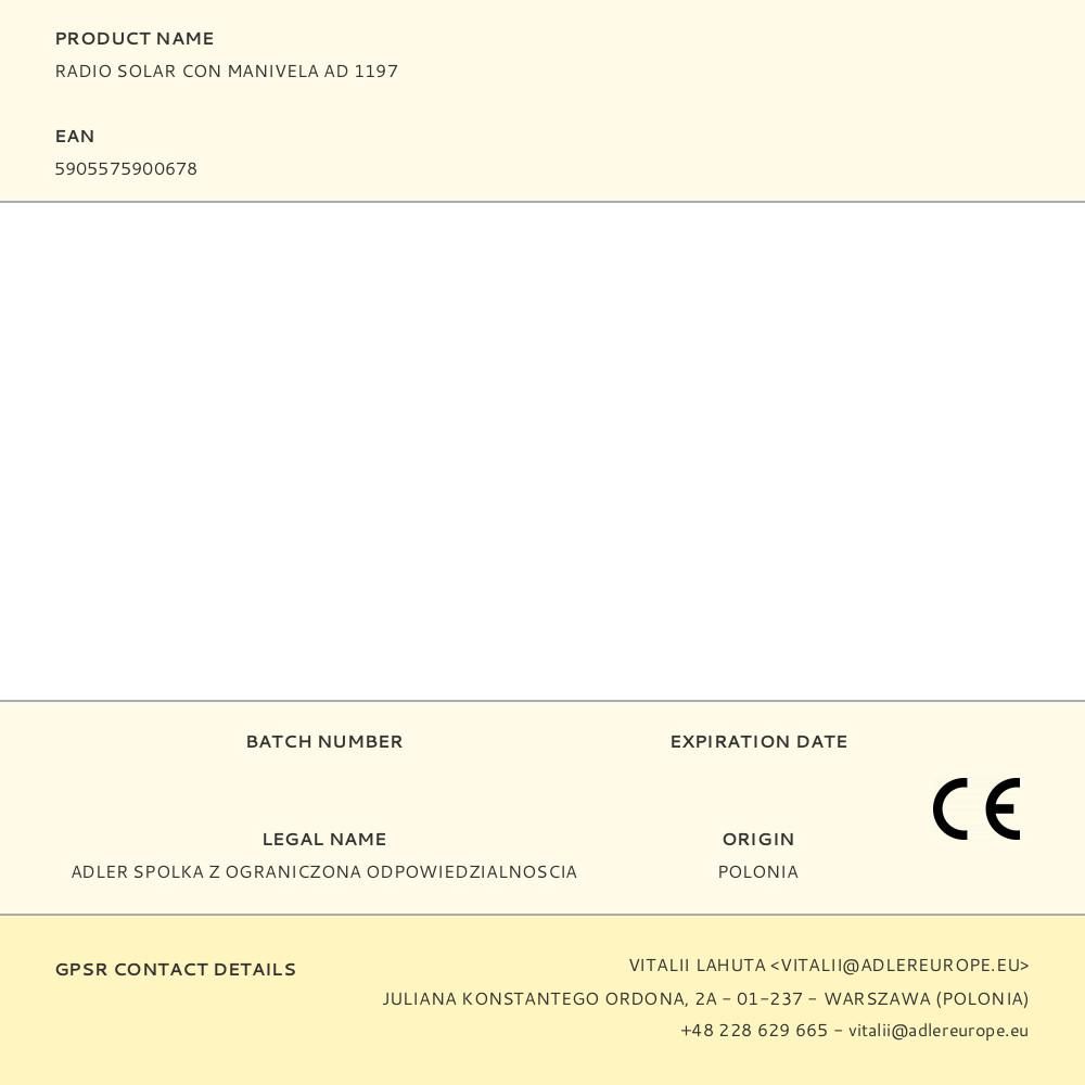 RADIO SOLAR CON MANIVELA AD 1197, 15,5 x 5 x 8 cm