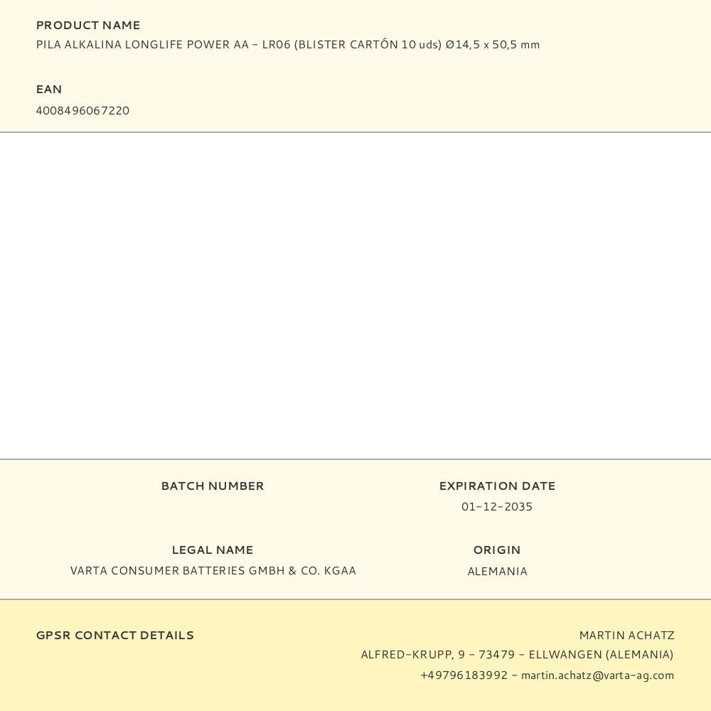 PILA ALKALINA LONGLIFE POWER AA - LR06 (BLISTER CARTÓN 10 uds) Ø14,5 x 50,5 mm