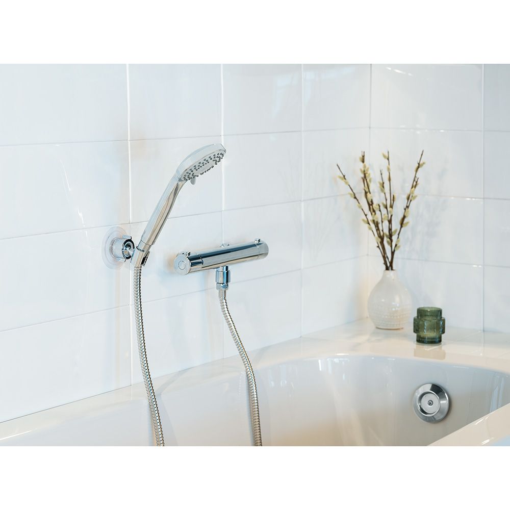 CONJUNTO DE DUCHA DE CONEXIÓN UNIVERSAL ½". ADECUADO PARA CALENTADOR DE FLUJO CONTINUO DE AGUA. DE LARGA DURACIÓN, CON BOQUILLAS PARA FACILITAR LA LIMPIEZA DE LA CAL. SUMINISTRO DE AGUA INTERNO POR SEPARADO. CABEZAL CON 5 FUNCIONES, Ø 9,5 cm. MANGUERA DE DUCHA (150 cm), PIEZAS DE CONEXIÓN DE PLÁSTICO CROMADO, CONEXIÓN ESTÁNDAR DE ½ - SE ADAPTA A TODOS LOS CABEZALES DE DUCHA. RECUBRIMIENTO DE ACERO INOXIDABLE. FÁCIL DE LIMPIAR Y DURADERO. COMPOSICIÓN: ABS, ACERO INOXIDABLE