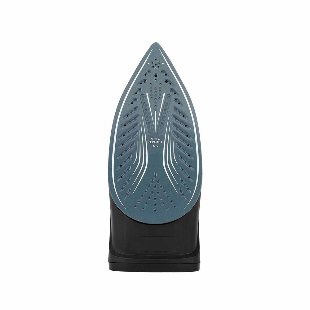 PLANCHA DE VAPOR CERÁMICA CON POTENCIA MÁX. 2400 W, SUELA DE CERÁMICA Y VAPOR VERTICAL - SISTEMA ANTIGOTEO, AUTOLIMPIABLE Y ANTICAL PERMANENTE. GOLPE DE VAPOR 160 g/min. VAPOR NOMINAL: 20 - 30 g/min. TERMOSTATO REGULABLE - PILOTO LUMINOSO - DEPÓSITO DE AGUA DE 350 ml CON TAPA DE SEGURIDAD - CORDÓN PIVOTANTE 360º, VOLTAJE 230 V