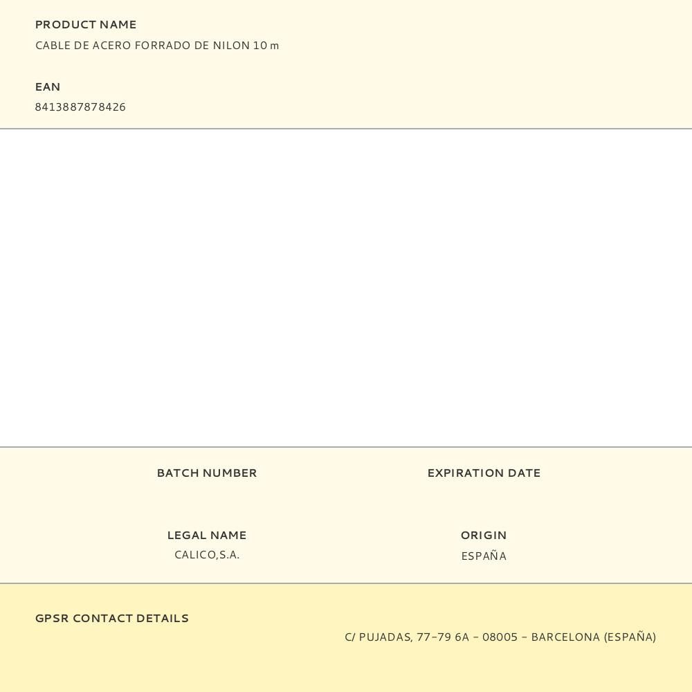 CABLE DE ACERO FORRADO DE NILON 10 m