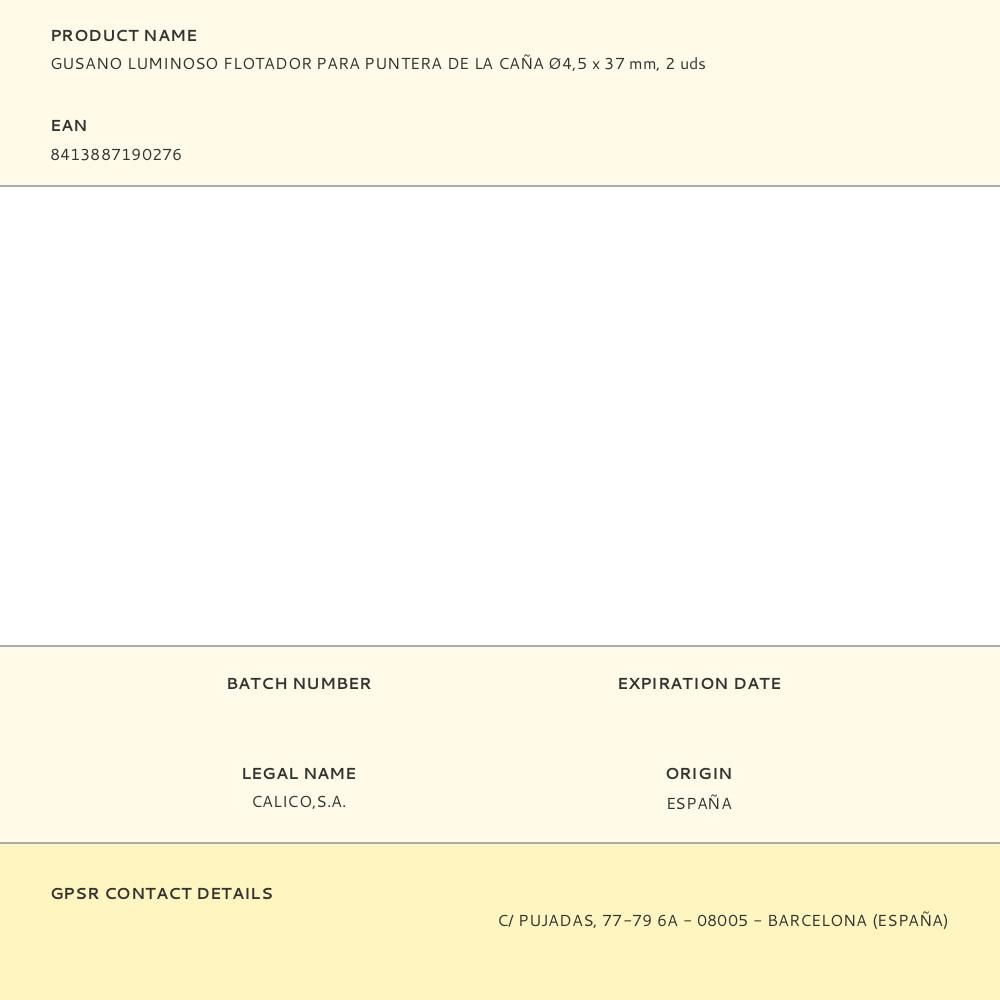 GUSANO LUMINOSO FLOTADOR PARA PUNTERA DE LA CAÑA Ø4,5 x 37 mm, 2 uds