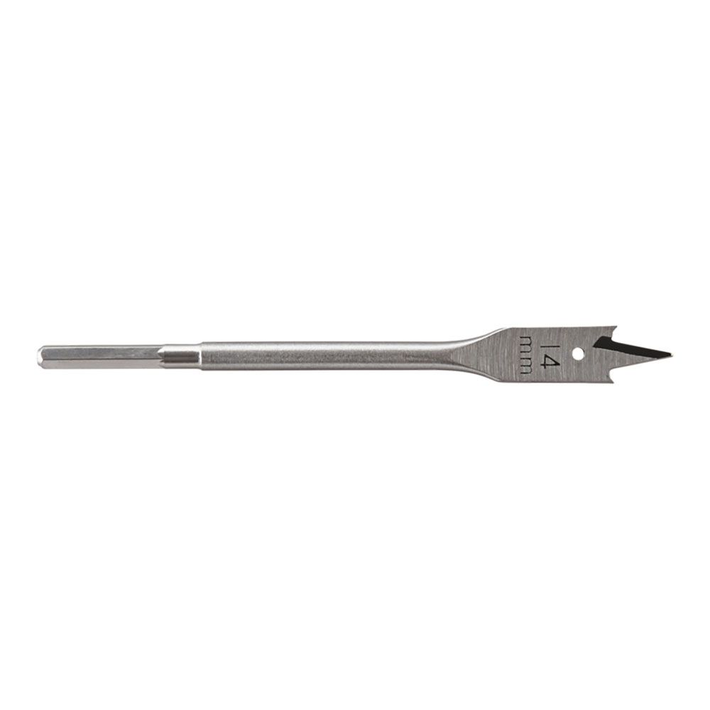 BROCA DE PALA Ø14,00 x 152 mm, VASTAGO HEXAGONAL 6,35 mm - ¼ pulg. ACERO TEMPLADO PARA HERRAMIENTAS, GEOMETRÍA PLANA, FILOS RECTIFICADOS