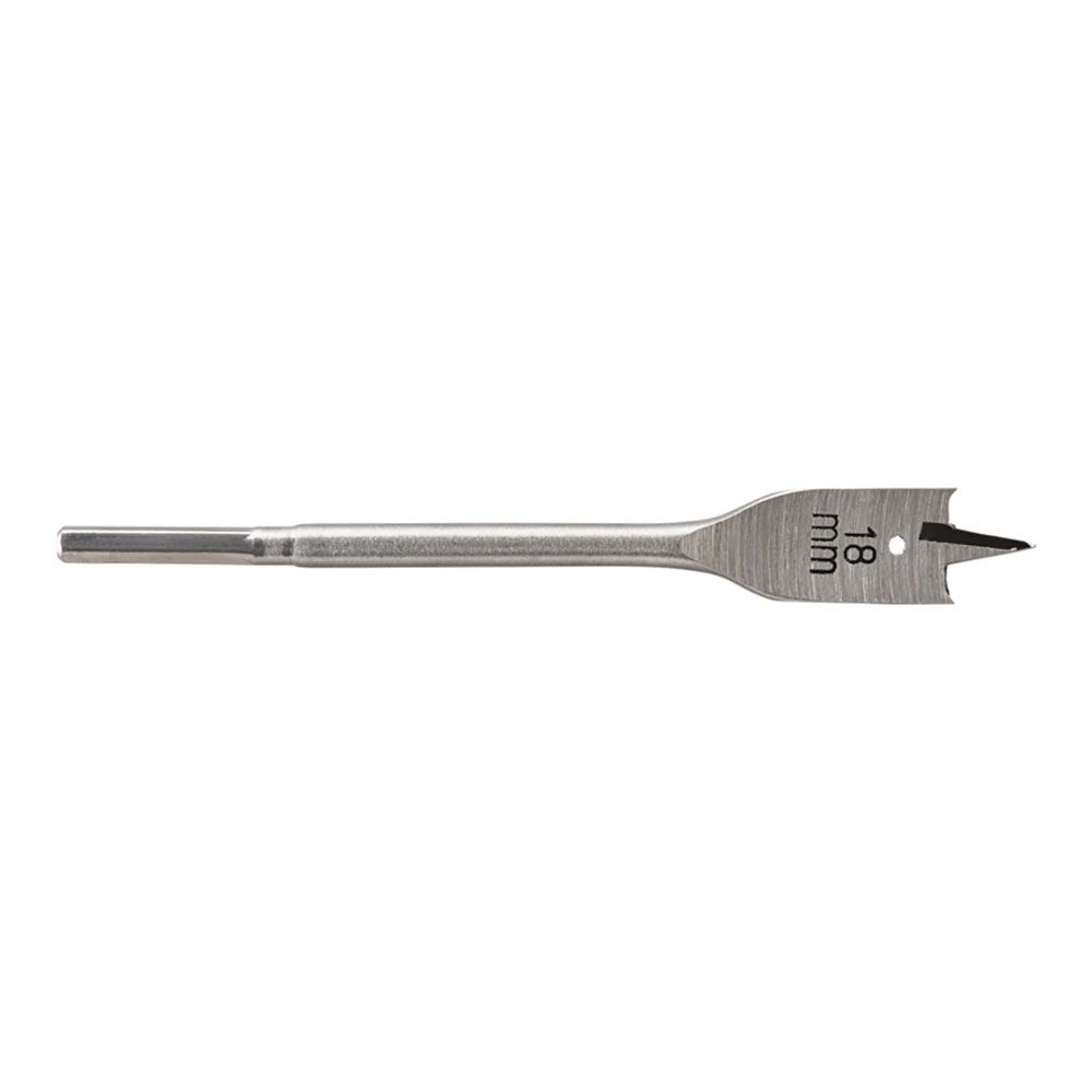 BROCA DE PALA Ø18,00 x 152 mm, VÁSTAGO HEXAGONAL 6,35 mm - ¼ pulg. ACERO TEMPLADO PARA HERRAMIENTAS, GEOMETRÍA PLANA, FILOS RECTIFICADOS