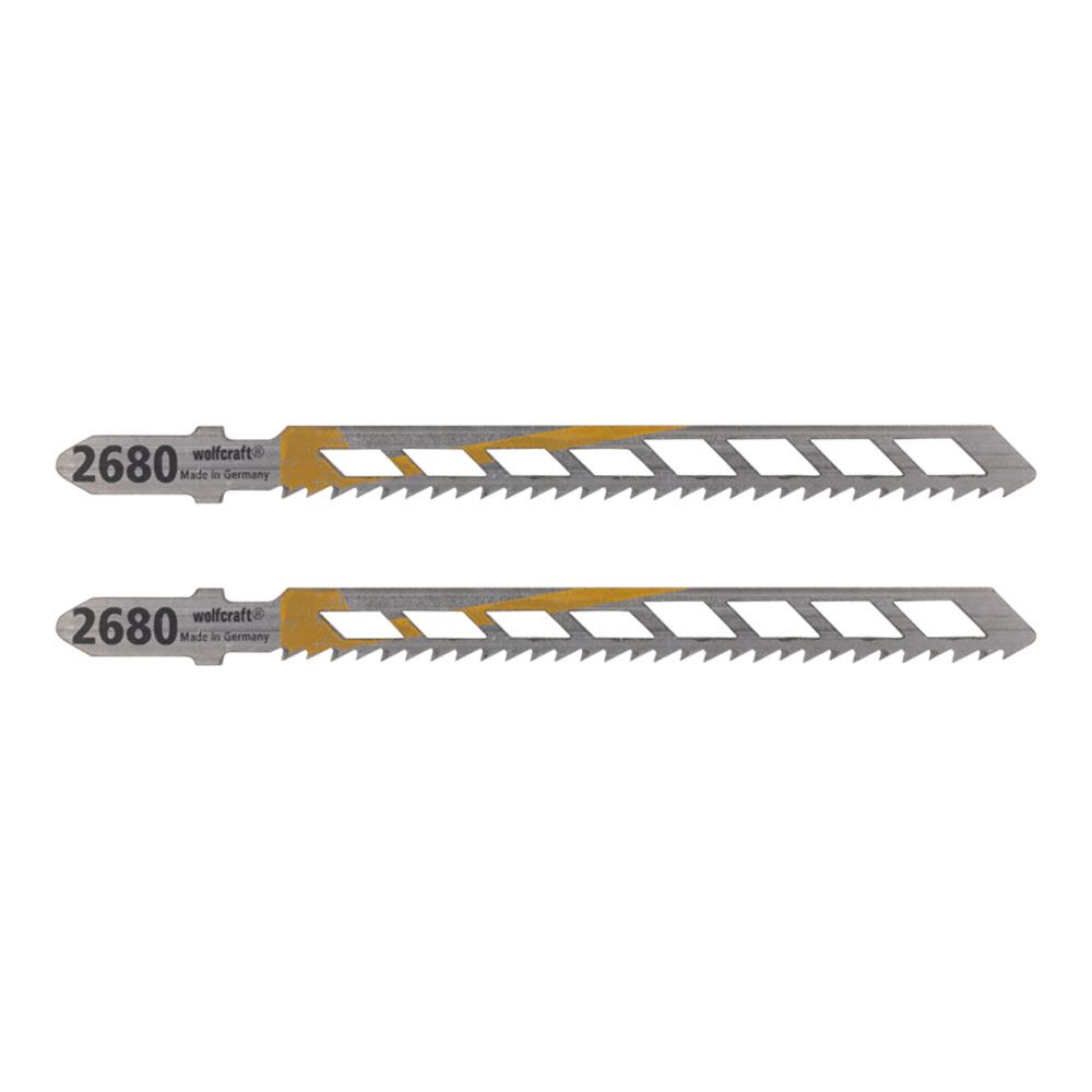 2 HOJAS DE SIERRA DE CALAR HIGH CARBON STEEL 100 mm, LONGITUD DE TRABAJO 75 mm, PARA MADERA Y PLÁSTICO, VÁSTAGO EN T, CORTE LIMPIO Y RECTO, PROFUNDIDAD DE CORTE máx. 30 mm