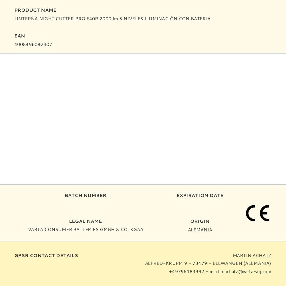 LINTERNA NIGHT CUTTER F40R PRO, 2000 lm, IP67. NIVELES DE ILUMINACIÓN 5: TURBO, ALTA, MEDIA, BAJA Y ESTROBOSCÓPICA. RANGO DE FOCO 350 m, SISTEMA DE ENFOQUE DE PRECISIÓN. AUTONOMÍA 5 horas. LUZ ROJA INDICADORA DE BATERÍA. MATERIAL ALUMINIO, PC. BATERIA DE LITIO 5200 mAh, FUNCIÓN POWER BANK, RECARGABLE CON CABLE DE CARGA USB-C (INCLUIDO), INCLUYE CUERDA PARA SUJETAR EN LA MUÑECA, DIMENSIONES: Ø44 mm DEL CABEZAL, LONGITUD 233 mm