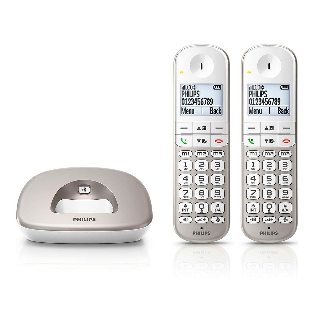 TELÉFONO INALÁMBRICO XL4902S CON UNA PANTALLA Y BOTONES EXTRAGRANDES Y ÚTILES FUNCIONES COMO POTENCIADOR DE VOLUMEN, MANOS LIBRES, COMPATIBILIDAD CON AUDÍFONOS, ENTRADAS PARA VARIOS TELÉFONOS Y AJUSTES DE PRIVACIDAD. CAPACIDAD DE AGENDA: 50 CONTACTOS + 3 CONTACTOS DE MARCACIÓN DIRECTA. CUENTA CON 300 m DE ALCANCE EN EXTERIORES Y 50 m EN INTERIORES, CONSUMO 0,75 W, FUNCIONA CON PILAS 2 x AAA RECARGABLES INCLUIDAS. CONTIENE 2 TELÉFONOS. DIMENSIONES 5,3 x 2,5 x 8,2 cm