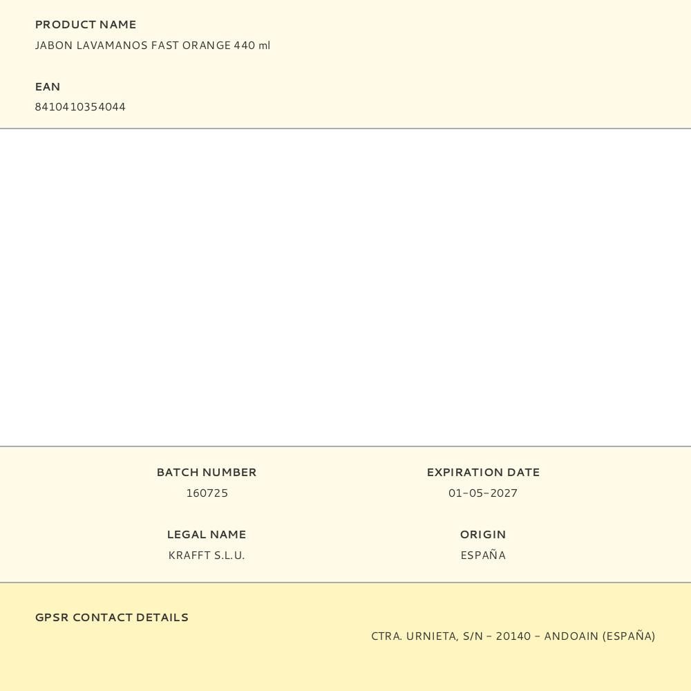 JABÓN MECÁNICO LAVAMANOS FAST ORANGE 440 ml