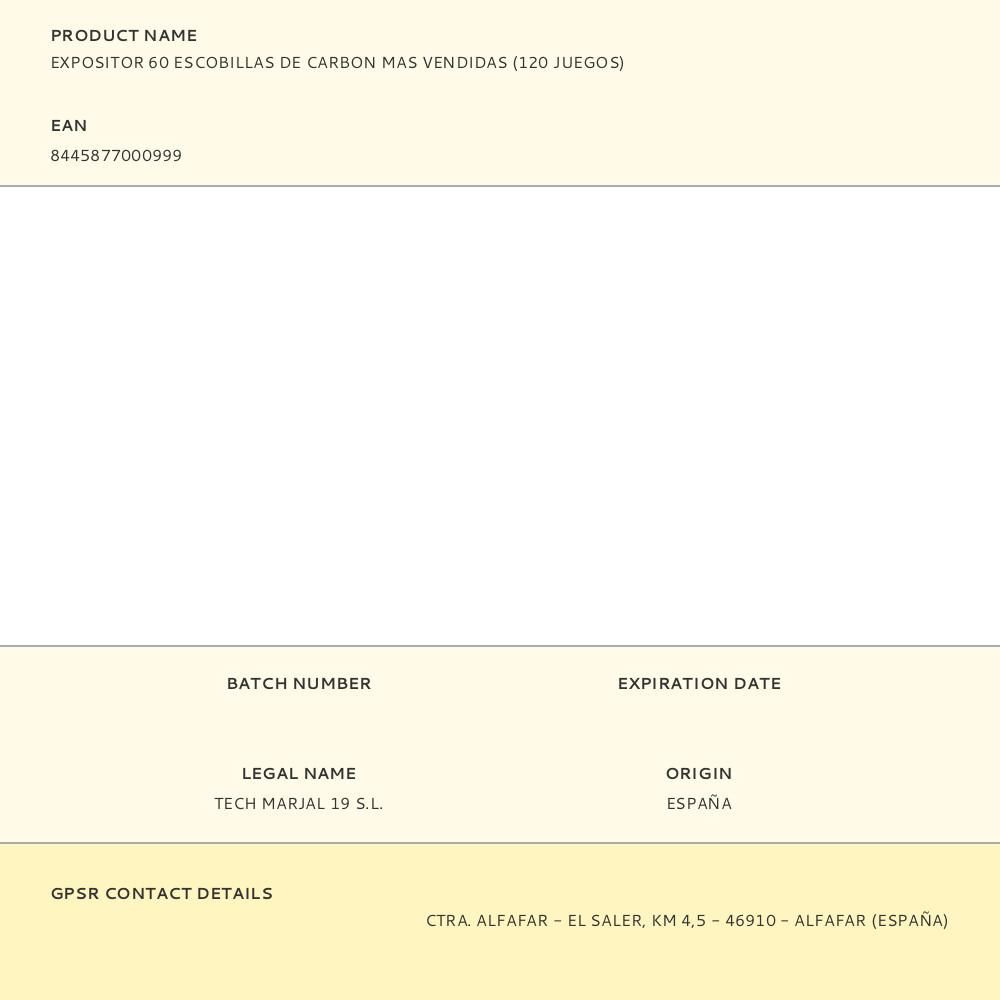 EXPOSITOR 60 ESCOBILLAS DE CARBON MAS VENDIDAS (120 JUEGOS)