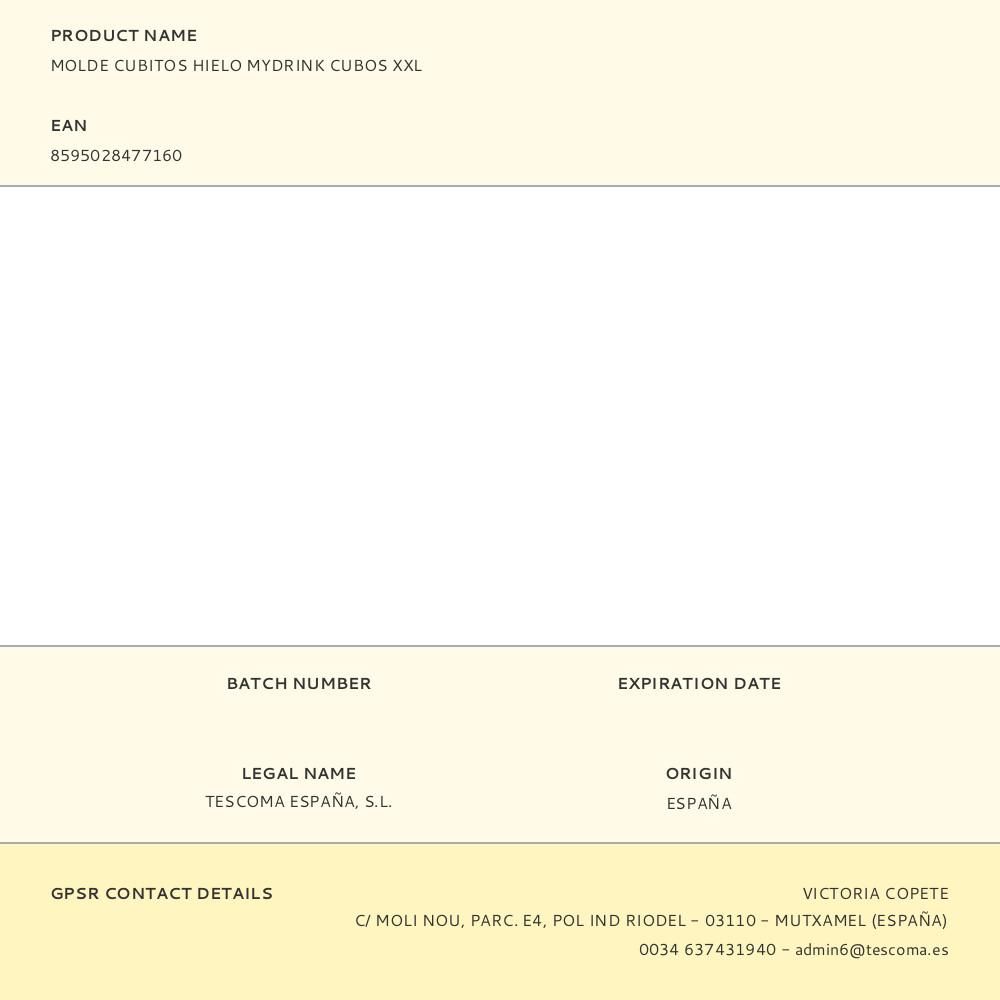 MOLDE CUBITOS HIELO MYDRINK CUBOS XXL DE SILICONA. APTO PARA LAVAVAJILLAS