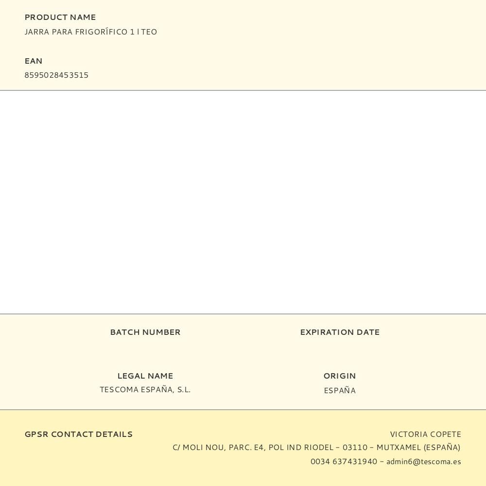 JARRA PARA FRIGORÍFICO CON CAPACIDAD DE 1 l. FABRICADA EN VIDRIO BOROSILICATO RESISTENTE AL CALOR. APTA PARA NEVERA Y LAVAVAJILLAS