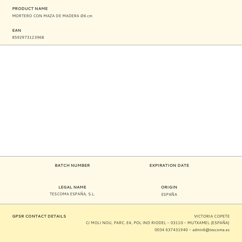 MORTERO CON MAZA DE MADERA Ø6 cm