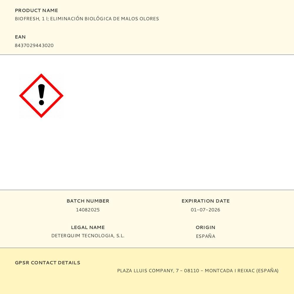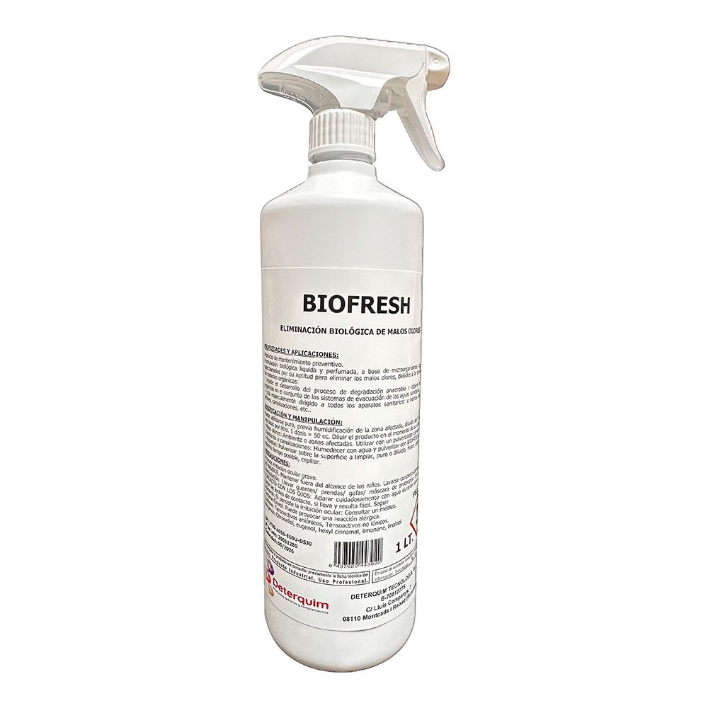 BIOFRESH, 1 l - ELIMINACIÓN BIOLÓGICA DE MALOS OLORES, MANTENIMIENTO PREVENTIVO, FORMULACIÓN BIOLOGICA LIQUIDA Y PERFUMADA A BASE DE MIRCROORGANISMOS