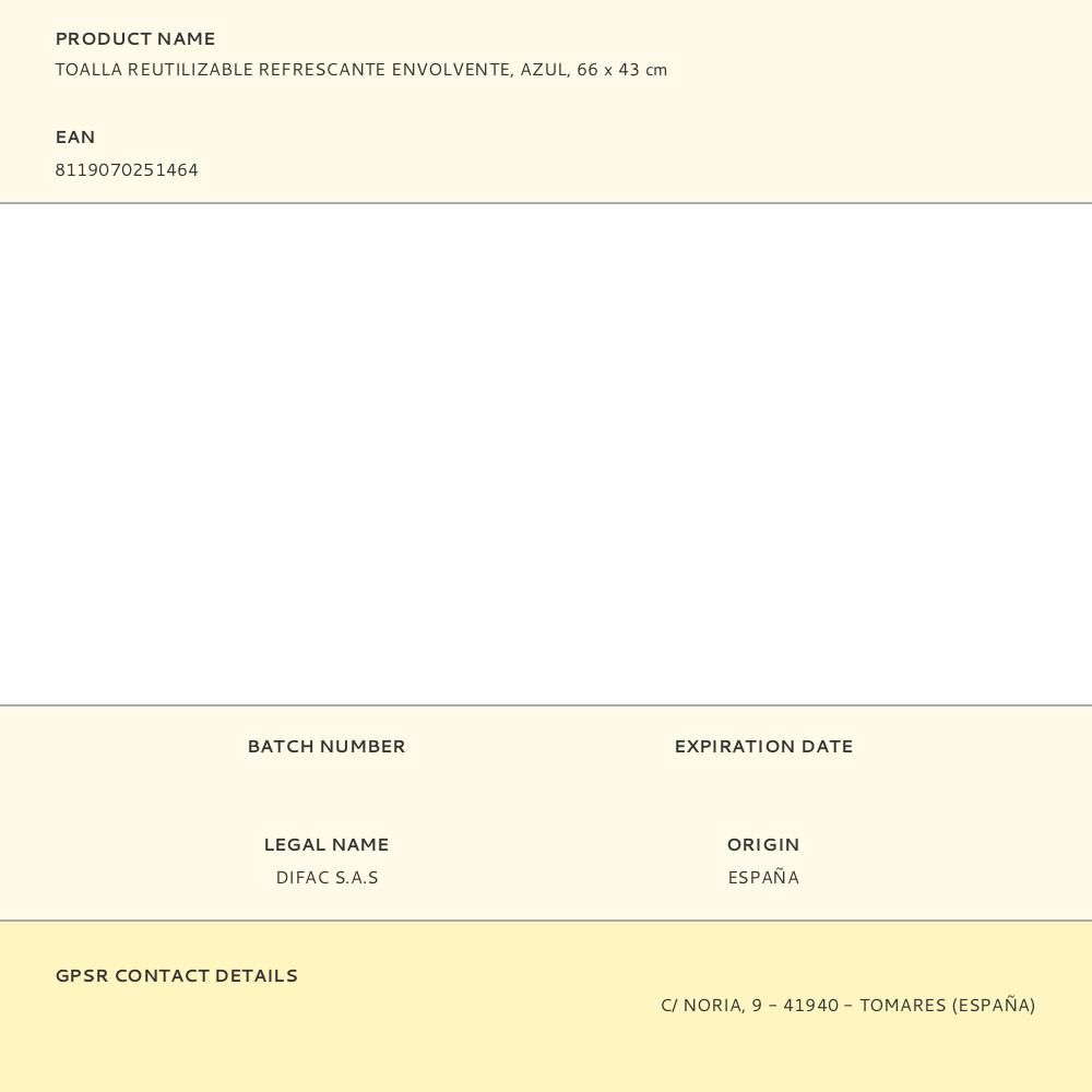 TOALLA REUTILIZABLE REFRESCANTE ENVOLVENTE, AZUL, 66 x 43 cm