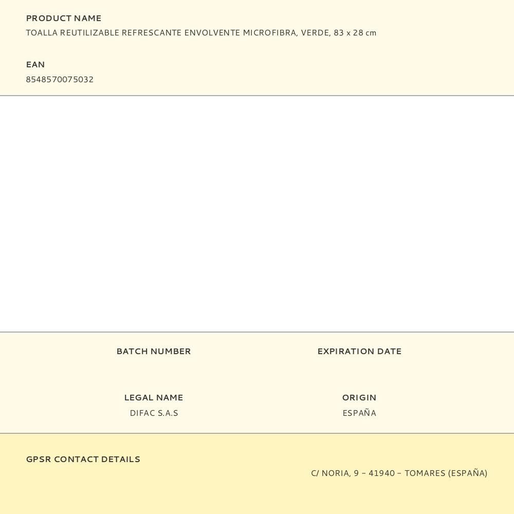 TOALLA REUTILIZABLE REFRESCANTE ENVOLVENTE MICROFIBRA, VERDE, 83 x 28 cm