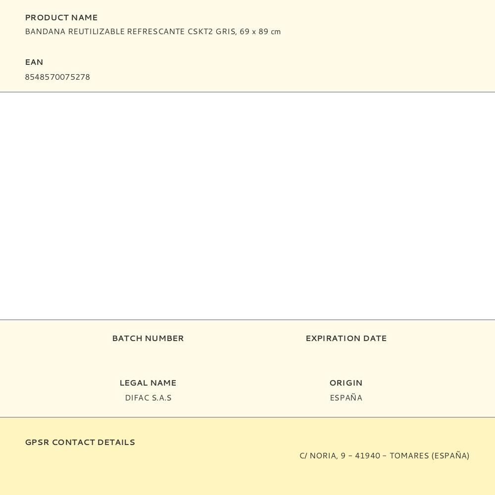 BANDANA REUTILIZABLE REFRESCANTE CSKT2 GRIS, 69 x 89 cm