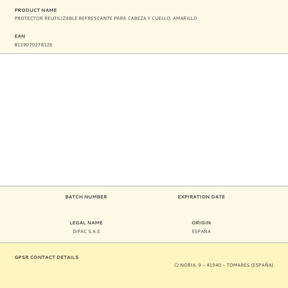 PROTECTOR REUTILIZABLE REFRESCANTE PARA CABEZA Y CUELLO, AMARILLO
