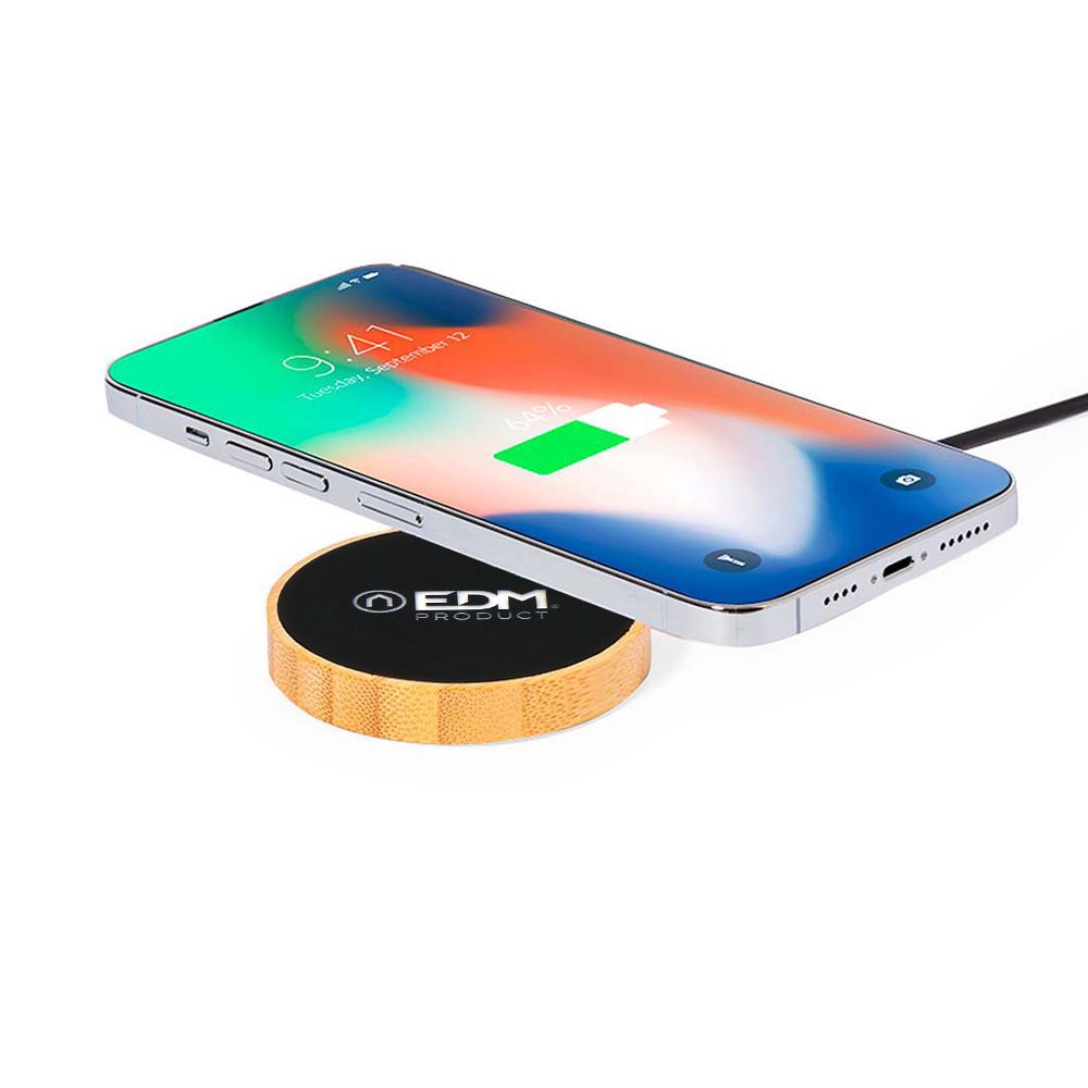 CARGADOR INALÁMBRICO CIRCULAR, FUNCIÓN DE CARGA 15 W - LUZ LED INTERIOR - FABRICADO EN BAMBÚ - COMPATIBLE CON DISPOSITIVOS EQUIPADOS CON TECNOLOGÍA DE CARGA INALÁMBRICA QI - BASE ANTIDESLIZANTE, INCLUYE CABLE CARGADOR TIPO C - Ø6,8 x 1,1 cm