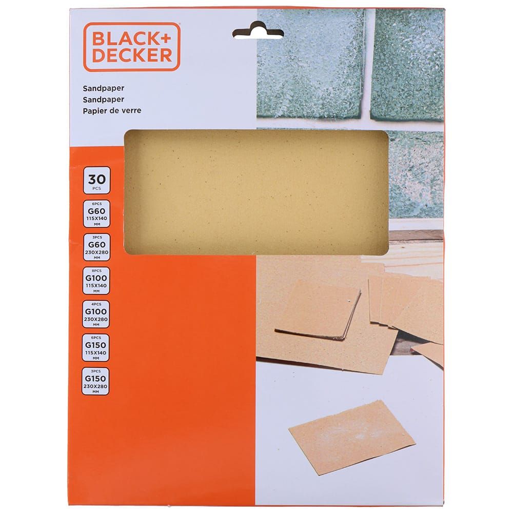 PAPEL DE LIJA, 30 PIEZAS. CONTIENE: 6 x G60 115 x 140 mm, 3 x G60 230 x 280 mm, 8 x G100 115 x 140 mm, 4 x G100 230 x 280 mm, 6 x G150 115 x 140 mm Y 3 x G150 230 x 280 mm