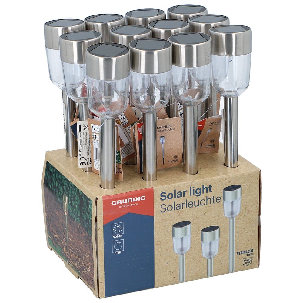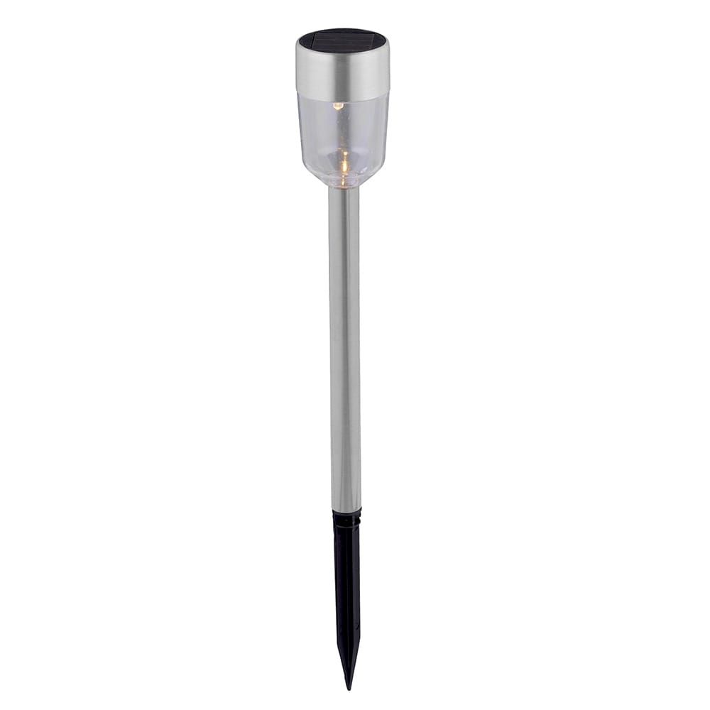 ESTACA SOLAR 1 LED, INCLUYE BATERIA DE 40 mAh 1,2 V, 6 - 8 h DE AUTONOMIA, MATERIAL ACERO INOXIDABLE, DIMENSIONES 4,5 x 4,5 x 17,5 cm