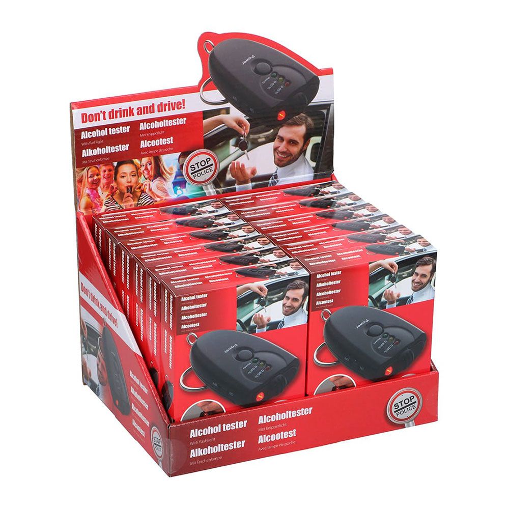 ALCOHOLÍMETRO DIGITAL CON LINTERNA, SE PUEDE COLGAR COMO LLAVERO, FUNCIONA CON PILAS 2 x AAA ( NO INCLUIDAS ), 4 x 2 x 7 cm