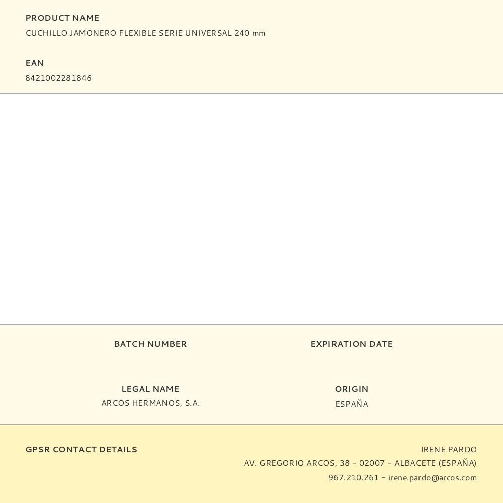 CUCHILLO JAMONERO FLEXIBLE SERIE UNIVERSAL 240 mm