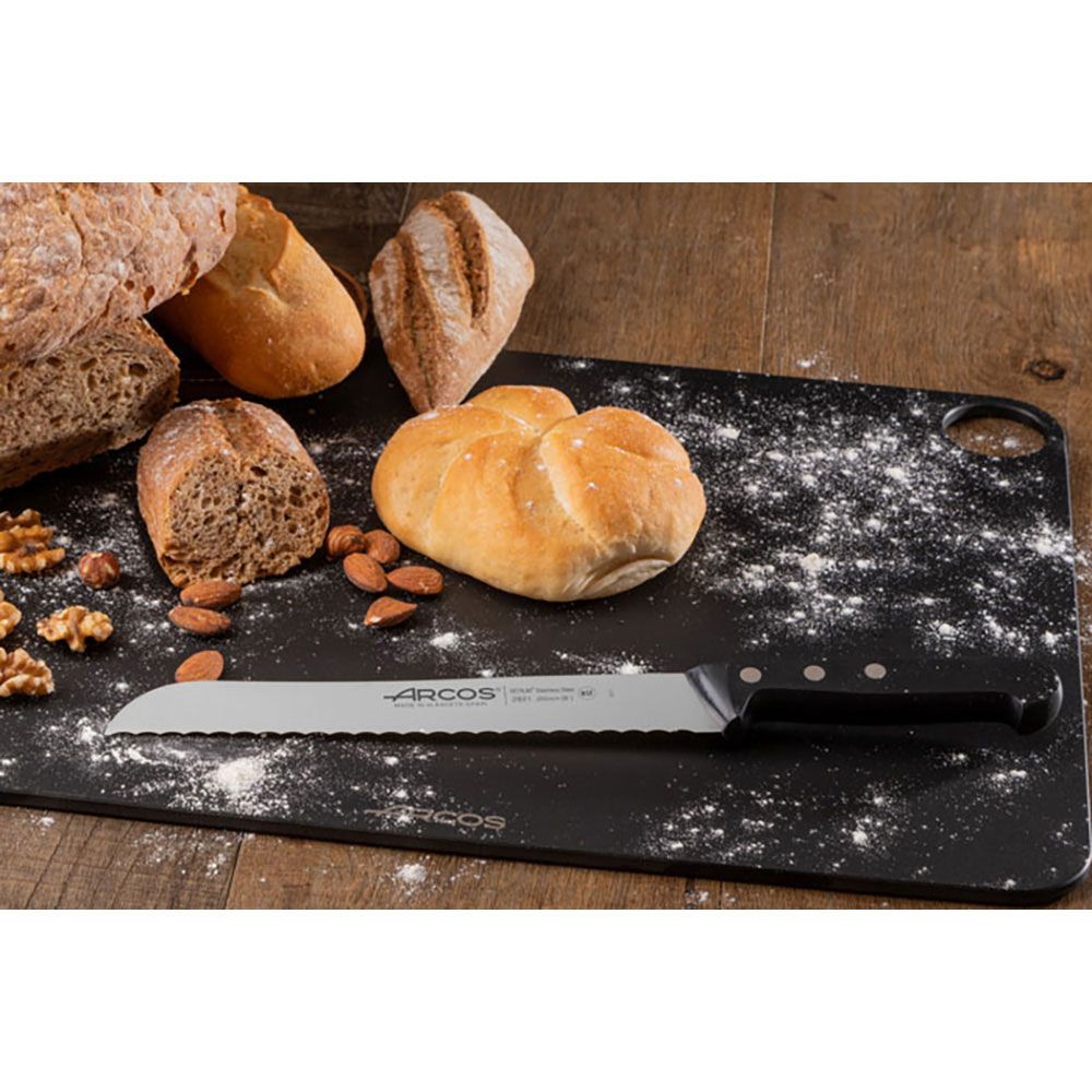 CUCHILLO PANERO SERIE UNIVERSAL 200 mm. FABRICADO CON ACERO INOXIDABLE NITRUM®. MANGO DE POLIOXIMETILENO EN COLOR NEGRO Y SUS CLÁSICAS LÍNEAS, INCLUYE LA TECNOLOGÍA BACTIPROOF SILVER QUE ACTÚA COMO ESCUDO CONTRA LOS GÉRMENES Y LAS BACTERIAS DE LA SUPERFICIE DEL MANGO. REMACHES DE ACERO INOXIDABLE