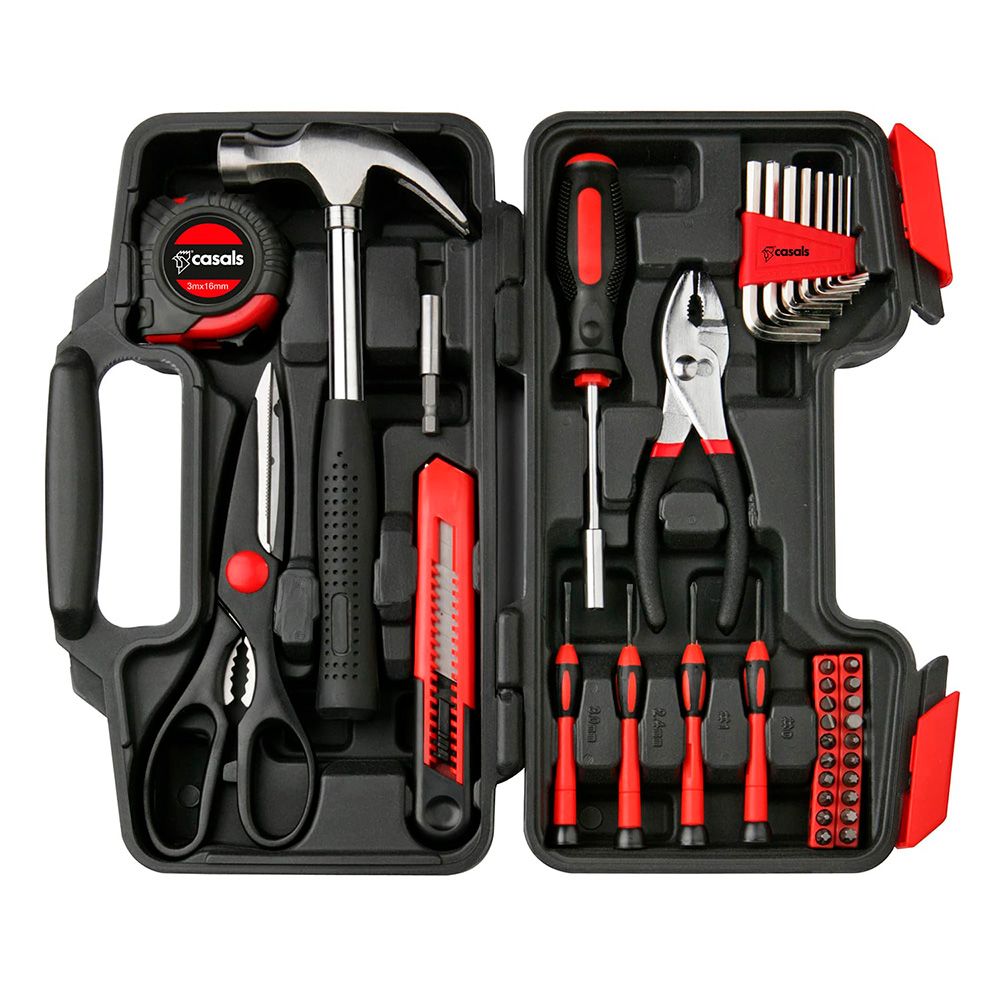 MALETÍN DE HERRAMIENTAS CON 39 PIEZAS. CONTENIDO: 1 TIJERA, 1 MARTILLO, 8 LLAVES ALLEN, 1 CÚTER, 20 PUNTAS DE DESTORNILLADOR, 1 ALICATES UNIVERSAL, 1 CINTA MÉTRICA DE 3 m, 1 MANGO DE DESTORNILLADOR, 4 DESTORNILLADORES DE PRECISIÓN, 1 ADAPTADOR MAGNÉTICO PARA PUNTAS DE DESTORNILLADOR