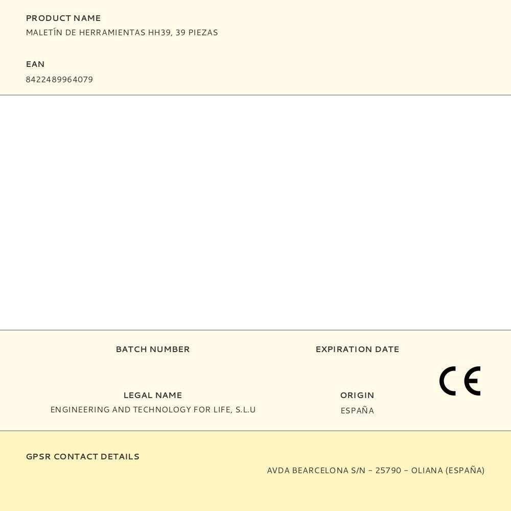 MALETÍN DE HERRAMIENTAS HH39, 39 PIEZAS