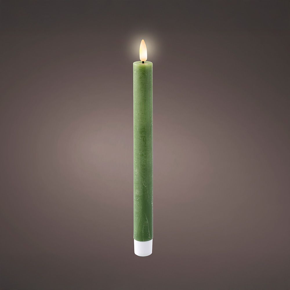 VELA DE CERA LED COLOR VERDE, ACABADO RÚSTICO, Ø2,20 x 24,50 cm, PACK 2 uds