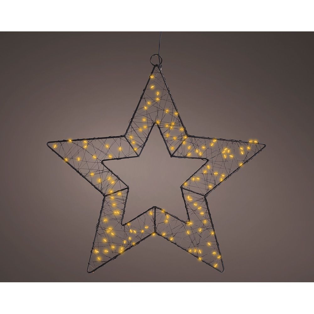 FIGURA ESTRELLA MICROLED METAL NEGRO, 120 LEDS, LUZ CÁLIDA, FUNCIONA CON PILAS 3 x AA (NO INCLUIDAS), CON TEMPORIZADOR 6 h ENCENDIDA/18 h APAGADA, CABLE DE ALIMENTACIÓN DE 1 m, EXTERIOR, Ø38 cm