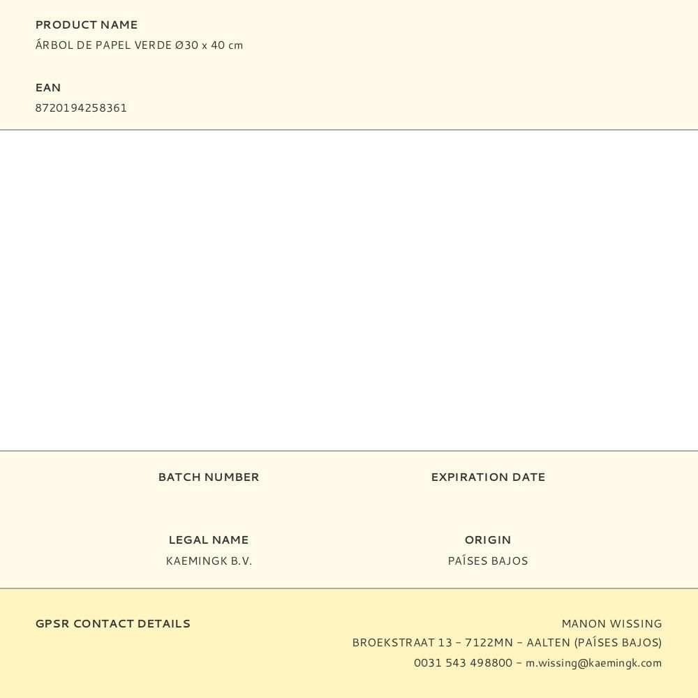 ÁRBOL DE PAPEL VERDE Ø30 x 40 cm