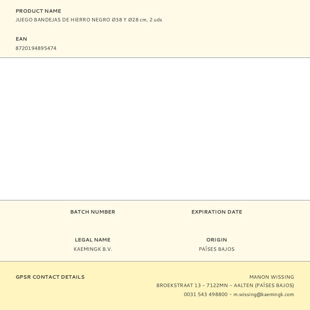 JUEGO BANDEJAS DE HIERRO NEGRO Ø38 Y Ø28 cm, 2 uds