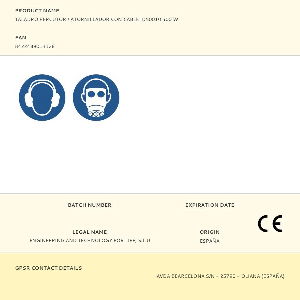 TALADRO PERCUTOR 500 W 230 - 240 V 50 Hz CON CABLE DE 1,8 m. VELOCIDAD: 0-3000 RPM. PORTABROCAS: 13 mm. FUNCIONES: ATORNILLADOR Y PERCUTOR. CONTROL DE VELOCIDAD ELECTRÓNICO. CAPACIDAD MÁXIMA EN ACERO: 10 mm, CAPACIDAD MÁXIMA EN MADERA: 24 mm, CAPACIDAD MÁXIMA EN HORMIGÓN: 13 mm. MANGO ERGONÓMICO CON REVESTIMIENTO SOFT TOUCH. INCLUYE MANGO ADICIONAL, LLAVE DE APRIETE DEL PORTABROCAS, ESCOBILLAS Y TOPE