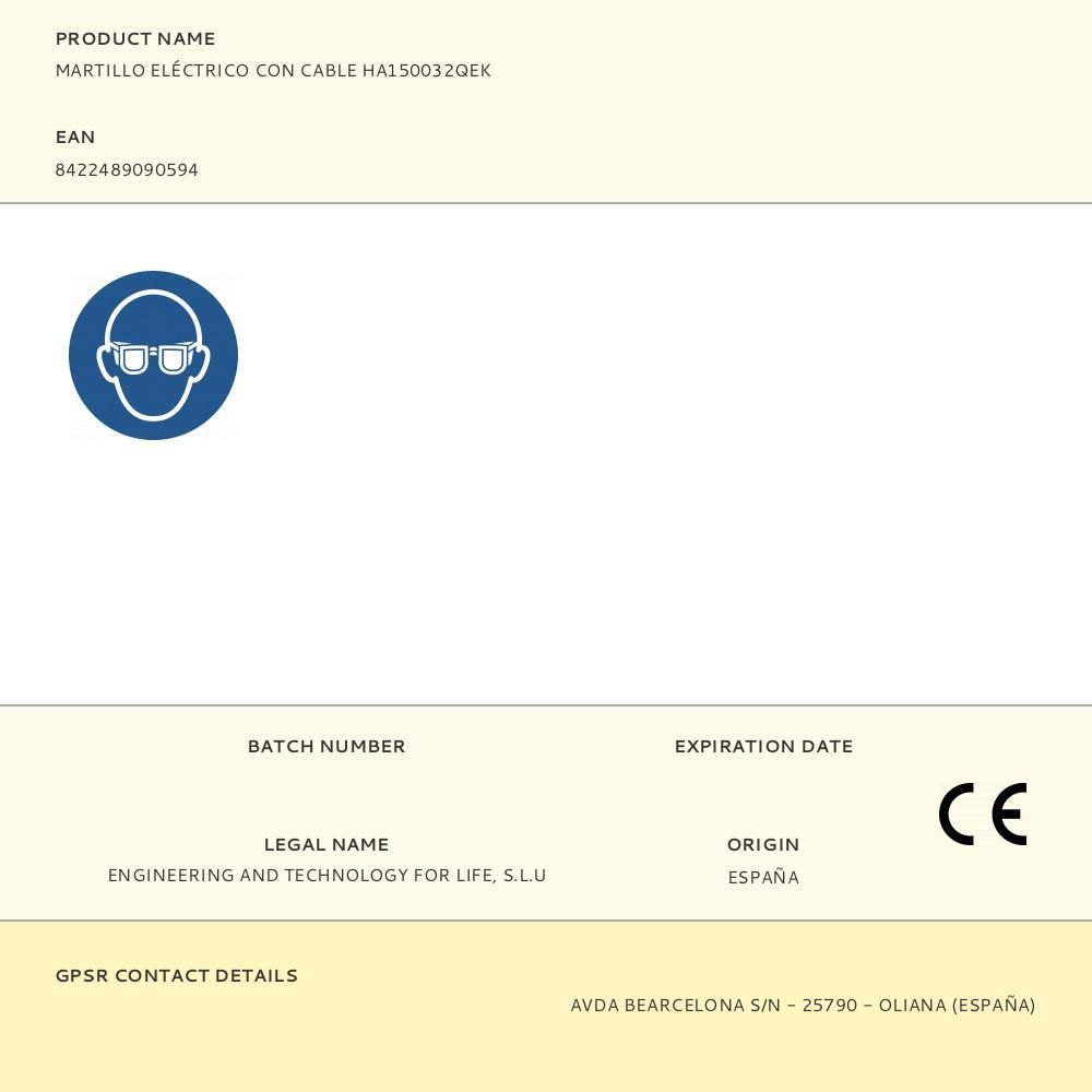 MARTILLO PERCUTOR SDS-PLUS 1500 W HA150032QEK CON CABLE