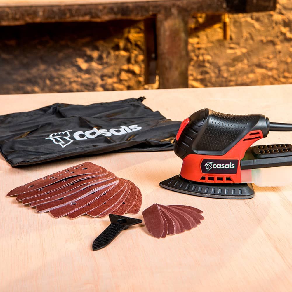 MULTILIJADORA 75 W 230 V 50 Hz PARA TODO TIPO DE SUPERFICIES, VELOCIDAD DE 11.000 RPM PARA UN TRABAJO LIMPIO, RÁPIDO Y PRECISO, INCLUYE 20 HOJAS GRANO 180 (FINGER), 4 HOJAS GRANO 80, 8 HOJAS GRANO 120, 8 HOJAS GRANO 180 Y BOLSA. ASPIRACIÓN INTEGRADA PARA REALIZAR EL TRABAJO SIN ENSUCIAR. SE PUEDE UTILIZAR EN INTERIORES. DIMENSIONES DE LA BASE: 132 x 132 x 93 mm. AGARRE SOFT-TOUCH PARA UNA MAYOR COMODIDAD, FÁCIL MANEJO Y LIGEREZA