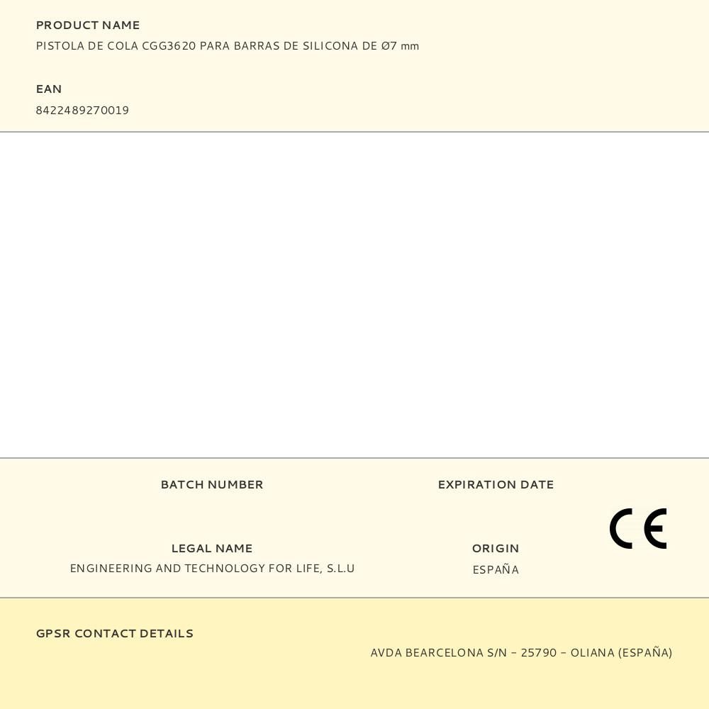 PISTOLA DE COLA CGG3620 PARA BARRAS DE SILICONA DE Ø7 mm
