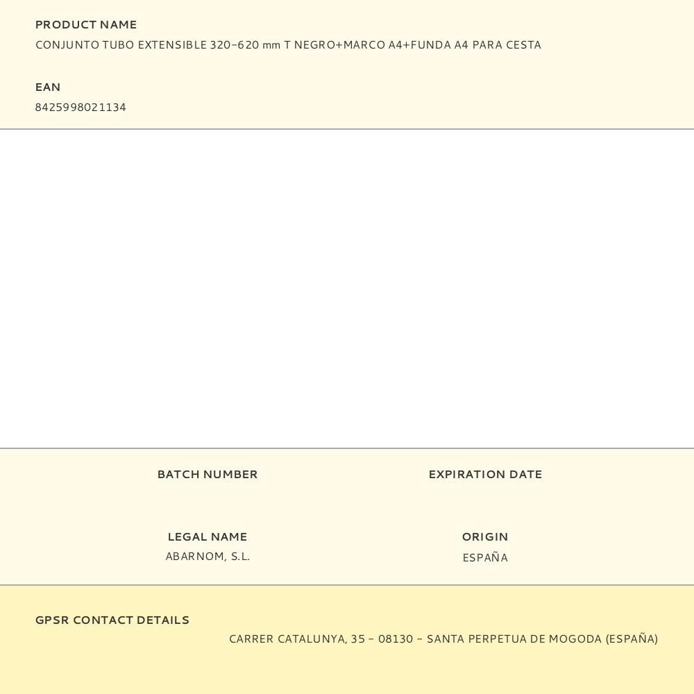 CONJUNTO TUBO EXTENSIBLE 320-620 mm T NEGRO+MARCO A4+FUNDA A4 PARA CESTA
