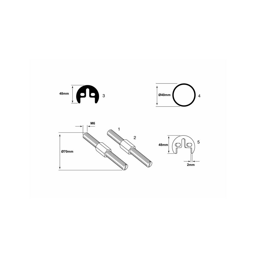 JUEGO FIJACIÓN GRIFERIA M6 - COMPUESTO POR 1 ud JUNTA TÓRICA Ø40 mm, 1 ud JUNTA GOMA 48 mm - 1 ud BASE 48 x 2 mm - 2 uds VARILLA RANURADA M6 x 70 mm - 2 uds TUERCA LARGA M6