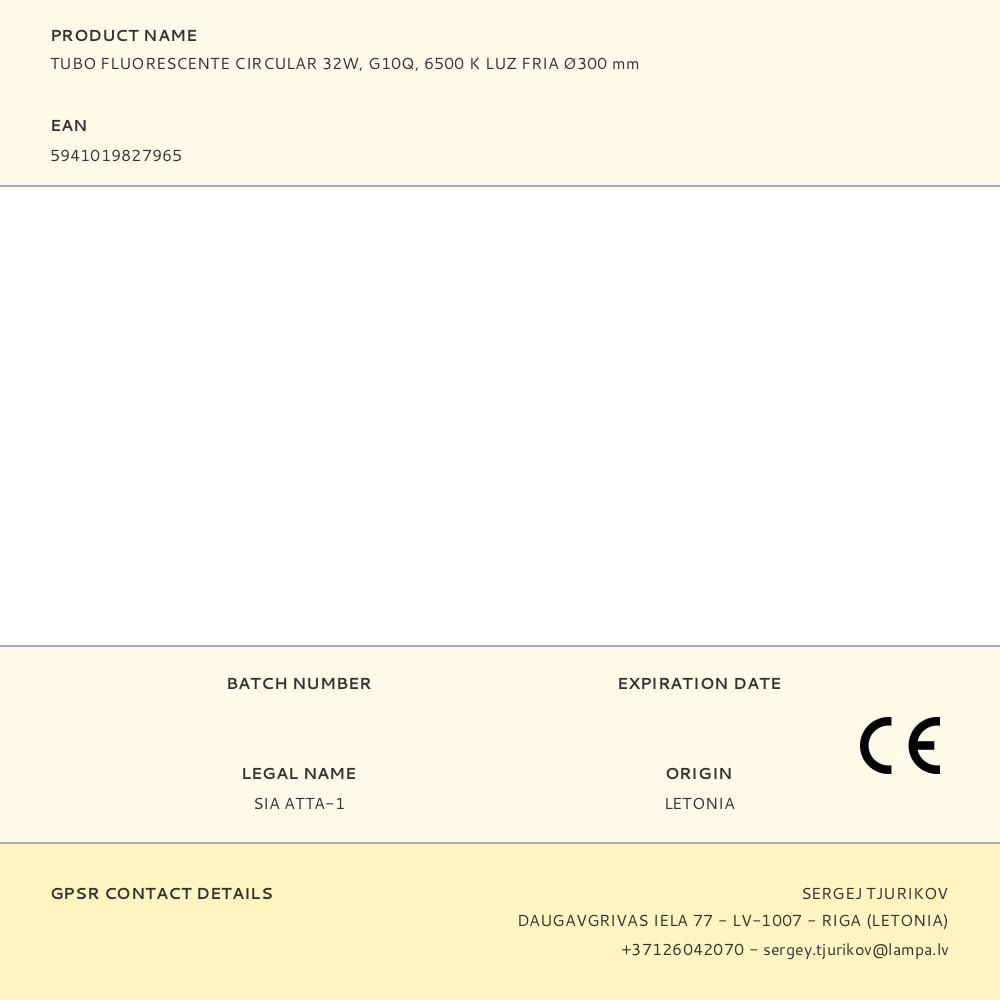 TUBO FLUORESCENTE CIRCULAR G10Q 32 W Ø300 mm T9, 6500 K LUZ FRIA