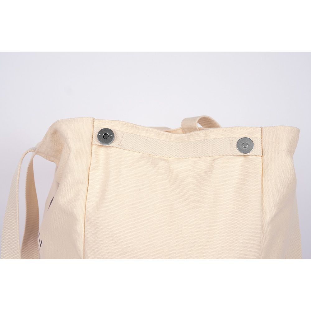 BOLSO TOTE BAG DE GRAN CAPACIDAD DE COLOR BEIGE, PERFECTO PARA LLEVAR TODAS LAS PERTENENCIAS DURANTE EL DÍA. CUENTA CON UN AMPLIO COMPARTIMENTO PRINCIPAL, DOS BOLSILLOS INTERIORES Y UNA TIRA PARA COLGAR LLAVES O BOLSAS. INCLUYE BOTONES MAGNÉTICOS LATERALES QUE PERMITEN AJUSTAR SU TAMAÑO SEGÚN LAS NECESIDADES. LOGOTIPO DE LA COLECCIÓN DE COLOR AZUL MARINO. COMPOSICIÓN DEL TEJIDO: 100% ALGODÓN. LAVADO A MANO MÁX. 30°, NO PLANCHAR, NO USAR SECADORA, NO USAR LEJÍA. CAPACIDAD: 40 l. MEDIDAS: 51 x 40, 5 x 21,5 cm