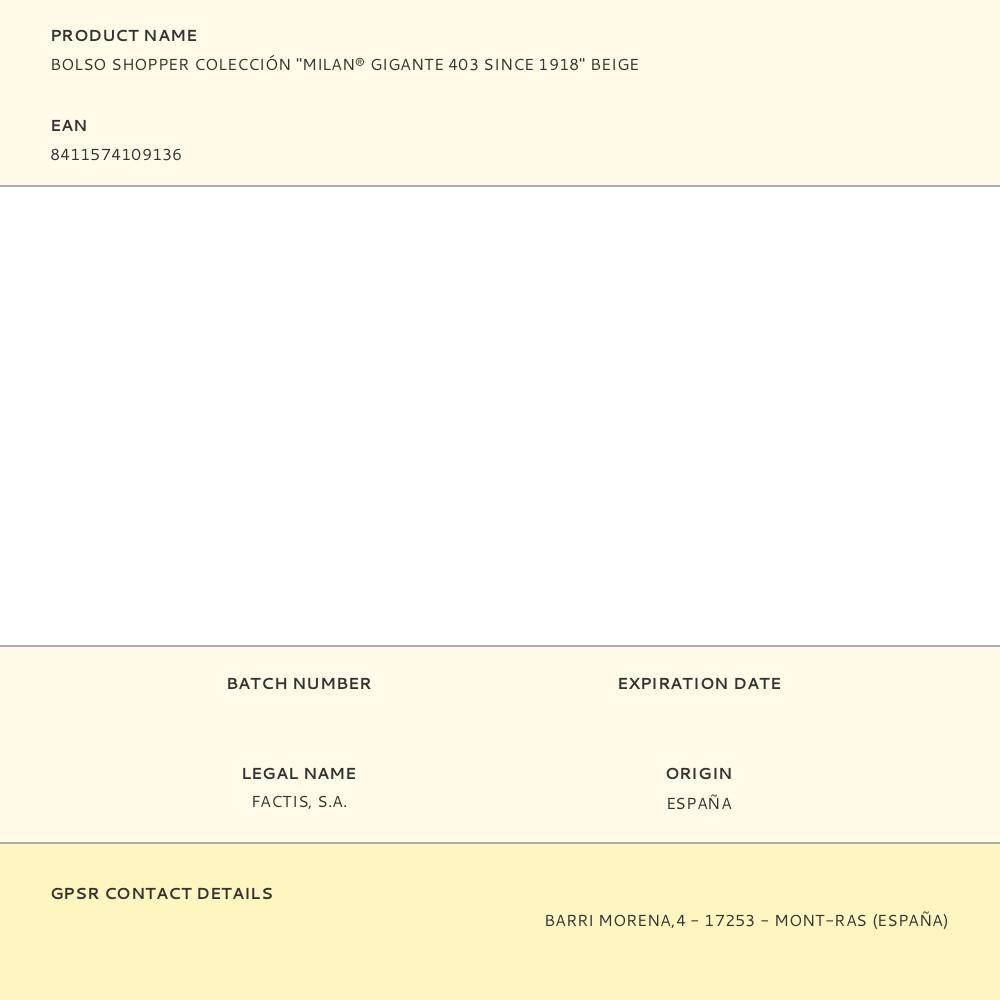 BOLSO SHOPPER COLECCIÓN "MILAN® GIGANTE 403 SINCE 1918" BEIGE