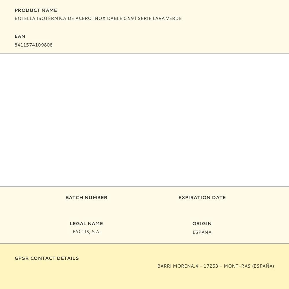 BOTELLA ISOTÉRMICA DE ACERO INOXIDABLE SERIE LAVA VERDE 591 ml