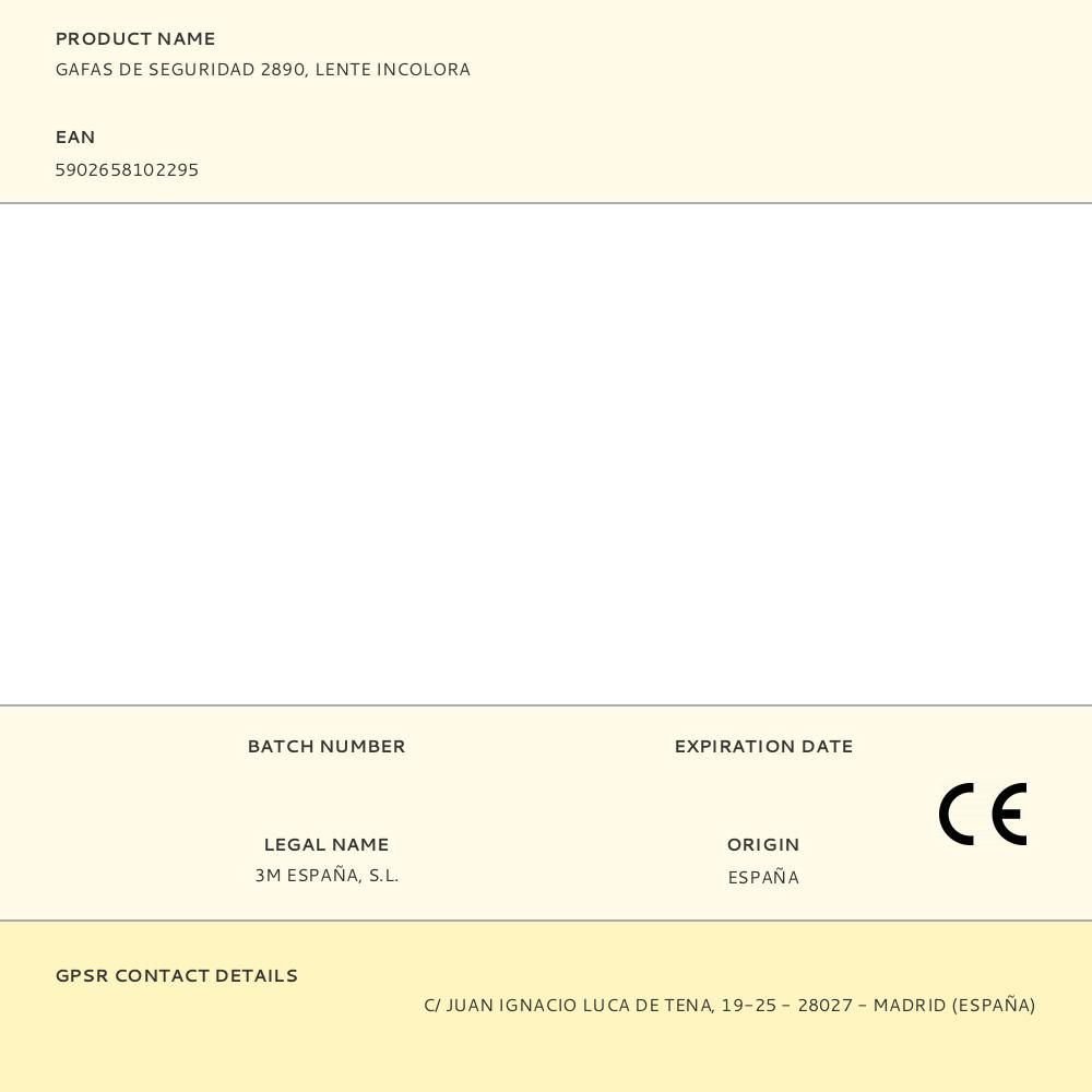 GAFAS DE SEGURIDAD 2890, LENTE INCOLORA