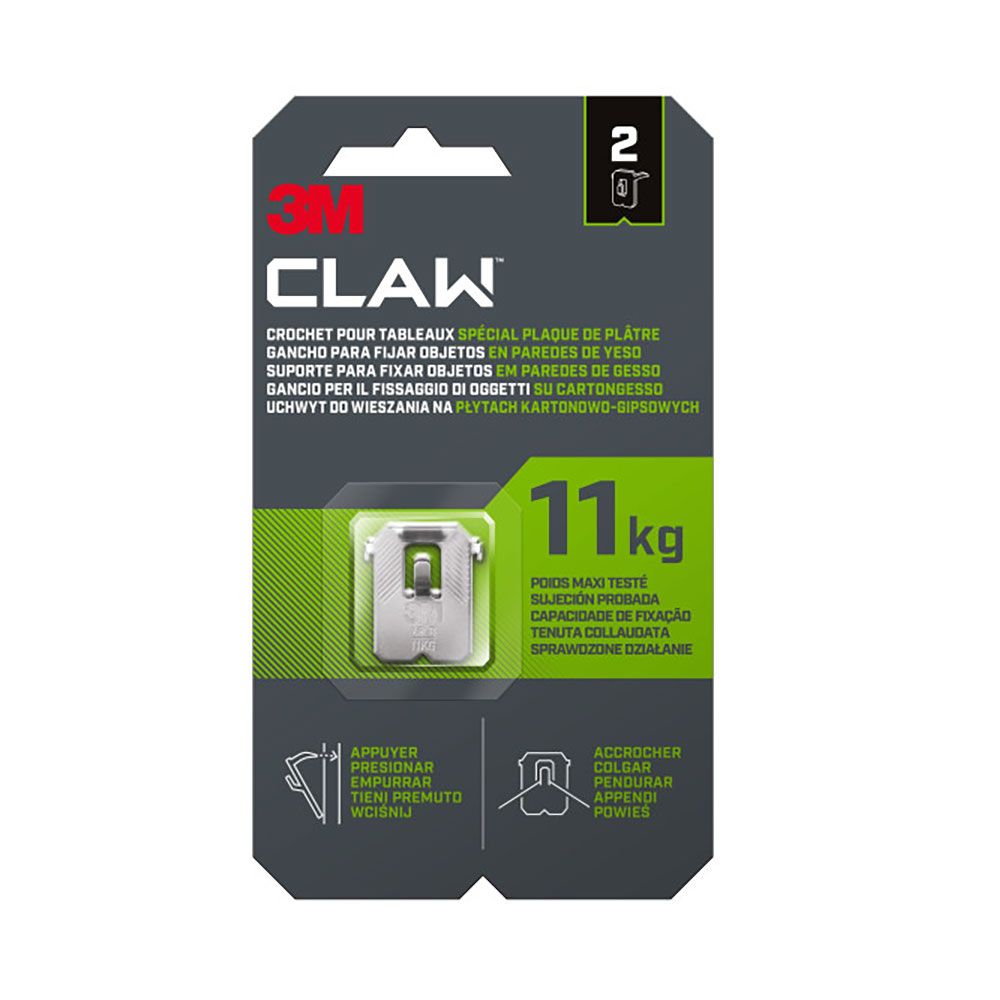 GANCHO PARA PAREDES DE YESO, CARGA MÁXIMA 11 kg, 27 x 31,5 x 4 mm, 2 uds, 3PH11-2WMR