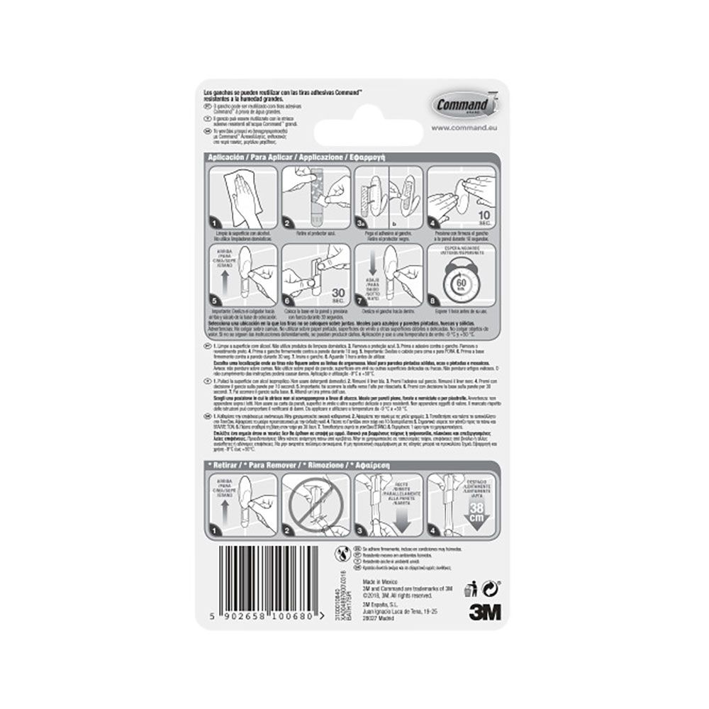 COMMAND GANCHO PARA TOALLAS, GRANDE, BLANCO, 1 ud + 2 TIRAS, BATH17, CARGA MÁXIMA 2,2 Kg